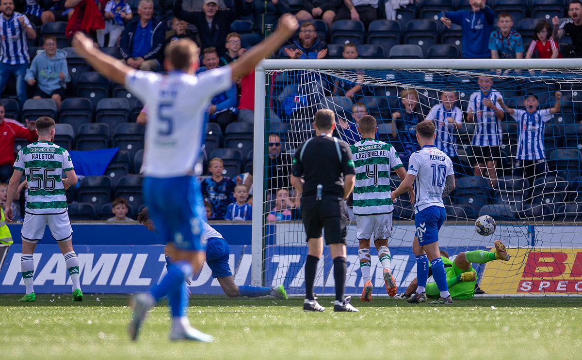 20th August 2023; Rugby Park, Kilmarnock, Scotland: Scottish Viaplay Cup Football, Kilmarnock versus Celtic; Marley Watkins of Kilmarnock scores and makes it 1-0 to Kilmarnock in the 59th minute