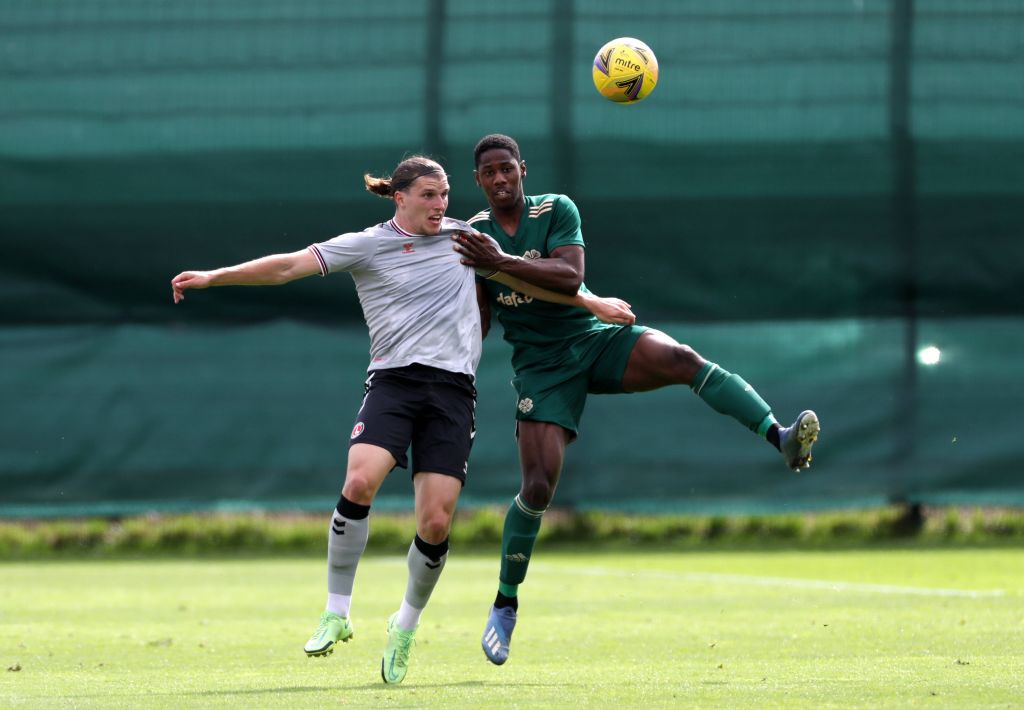 Celtic v Charlton Athletic – Pre-Season Friendly – Dragon Park Charlton Athletic s Josh Davison left and Celtic’s Osaze Urhoghide battle for the ball during the pre-season friendly match. Photo Bradley Collyer