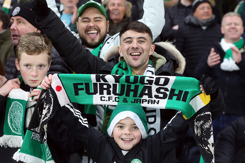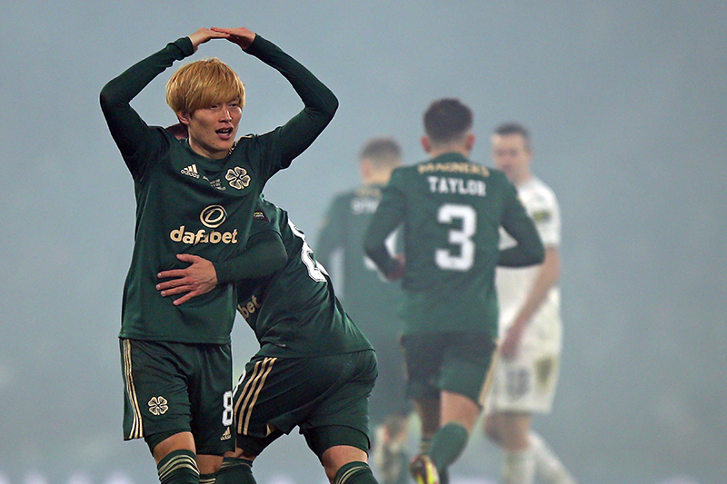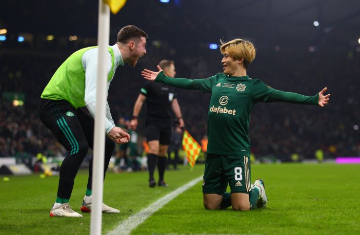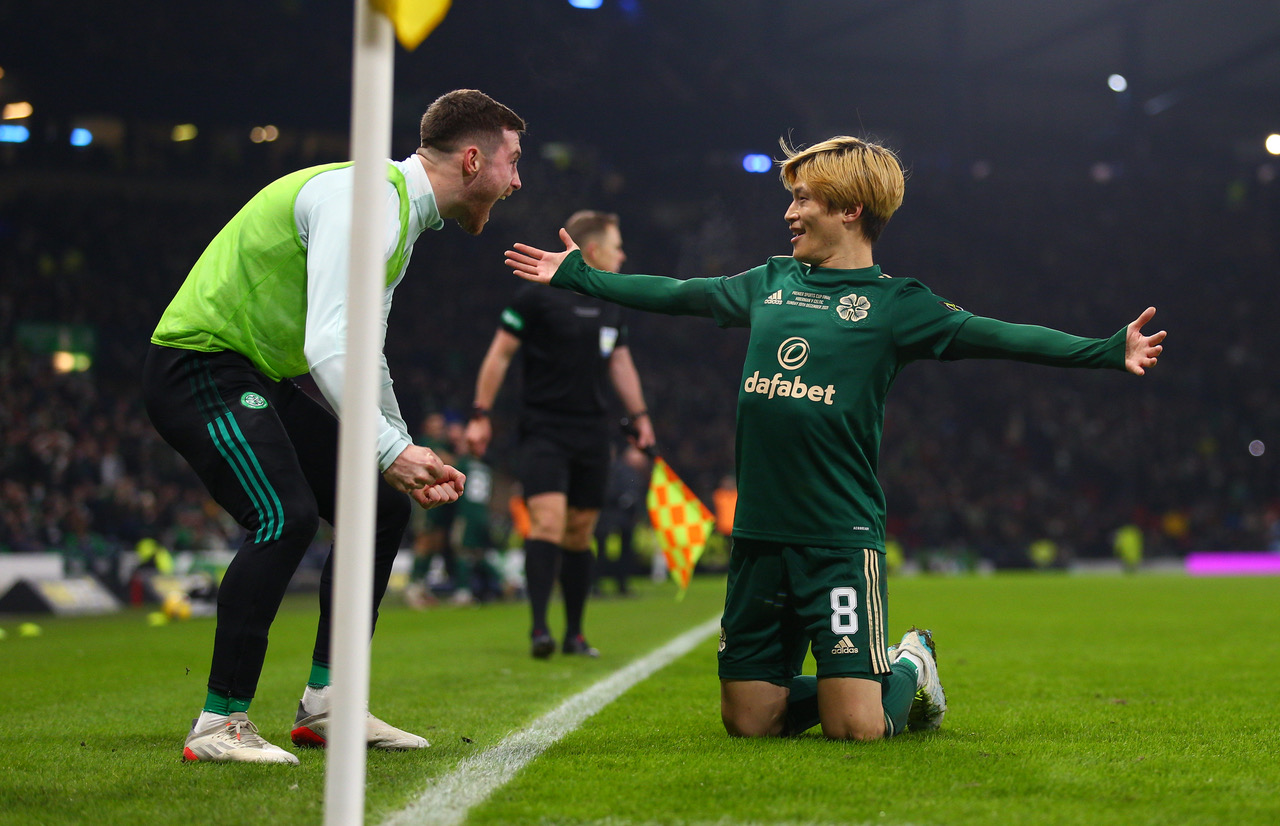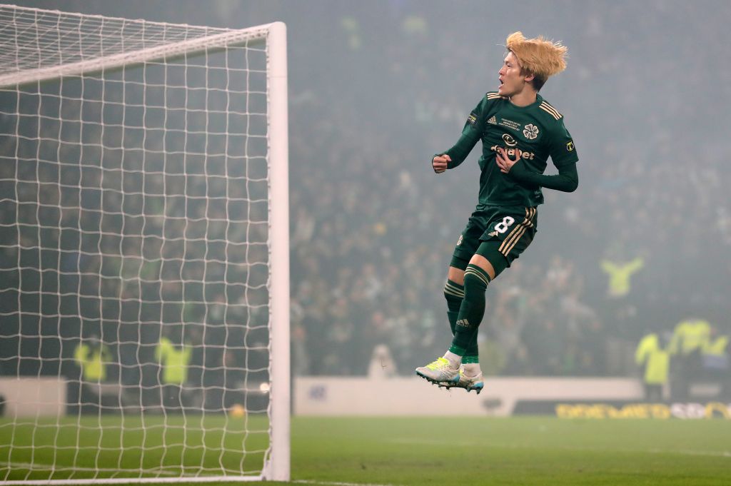 Kyogo Furuhashi of Celtic celebrates (Photo by Ian MacNicol/Getty Images)