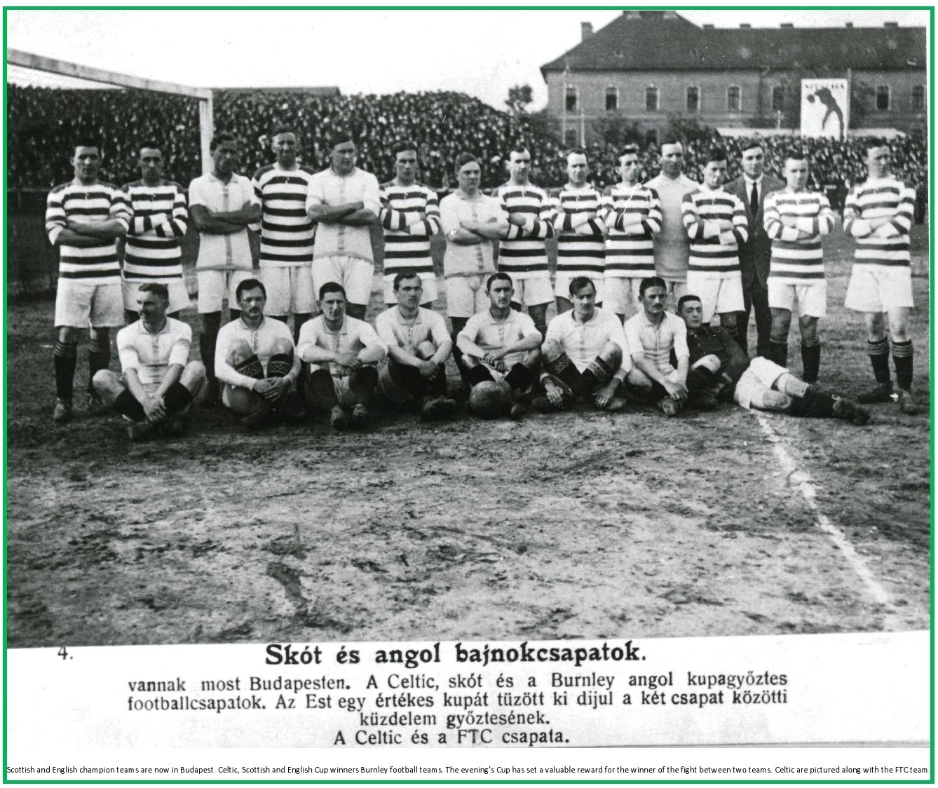 The game with Burnley had taken place on 21 May 1914 at the home of Ferencvaros, on Ulloi Road, and it had been there that Celts had opened their continental tour four days earlier with a 2-2 draw against the hosts, runner’s up that season in the Hungarian top division.