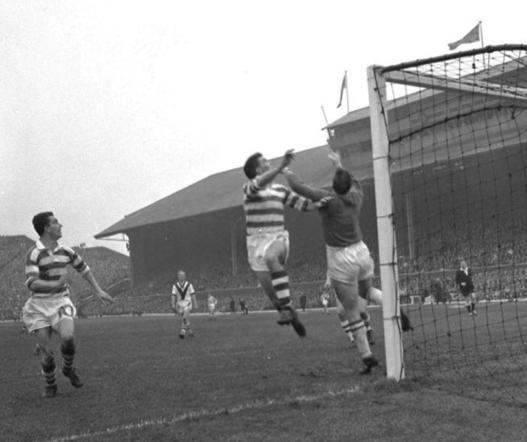 Nevertheless, both were chosen in an unchanged Celtic team to face their old reserve coach Jock Stein in front of 113,000 at Hampden on Saturday, 22 April 1961. The match failed to produce any goals and is best remembered for two fantastic saves, one at either end. Early in the first half, a Paddy Crerand rocket was diverted by the head of John Hughes towards the top corner of Eddie Connachan’s goalframe.