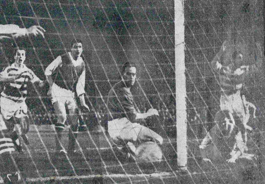 And on 24 minutes, Hughes pounced on a Leslie fumble to make it 2-0, after the keeper had blocked a Willie Fernie effort. Frank Haffey was then called into action at the other end to prevent the Diamond underdogs clawing their way back into the game, the big goalkeeper diving superbly to clutch the hall in the top corner. Eight minutes from the half-time whistle, Stevie Chalmers made it 3-0 with a deft flick and five minutes later, Fernie completed the rout with another wonderful finish. The second half was dull by comparison, other than the powerful Hughes being denied his hat-trick by referee Tom ‘Tiny’ Wharton, after blasting the ball past Leslie.