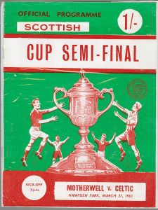 Jock Stein’s first cup tie as Celtic manager was the semi-final match with Motherwell at Hampden on Saturday, 27 March 1965, as the Scottish Cup approached its climax, his previous clubs Dunfermline Athletic and Hibernian meeting in the other last-four clash at Tynecastle. The Hampden match would end all-square at 2-2, with all four goals scored by Lisbon Lions, Motherwell striker Joe McBride twice putting his side ahead before Bobby Lennox then Bertie Auld, once again from the penalty spot, set up a midweek replay at the same venue. Joe’s two-goal display would be enough to finally clinch a summer transfer to his beloved Celtic.