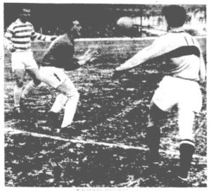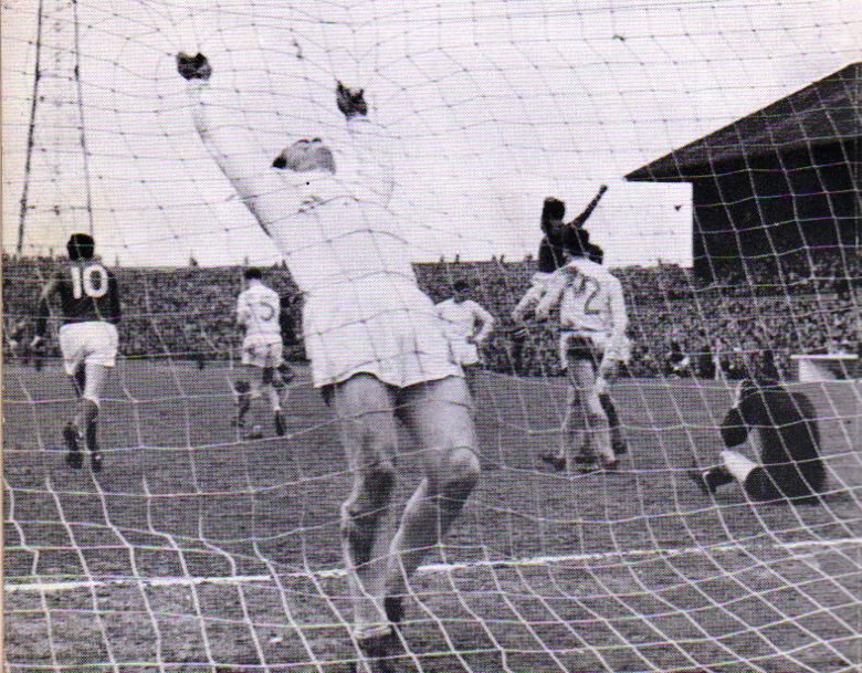 On the half hour, Celts struck back, Charlie picking up the ball in midfield, losing his marker Tommy Callaghan with a flick of the hips before launching a spectacular left-footed effort at the Dunfermline goal from fully 30 yards, the ball beating Pars keeper Jim Herriot all ends up to crash off the crossbar before spinning agonisingly into the air. As the crowd held its collective breath, Bertie Auld was the first to react, with an extraordinary leap, beating a Dunfermline defender on the goal-line to head home for 1-1.