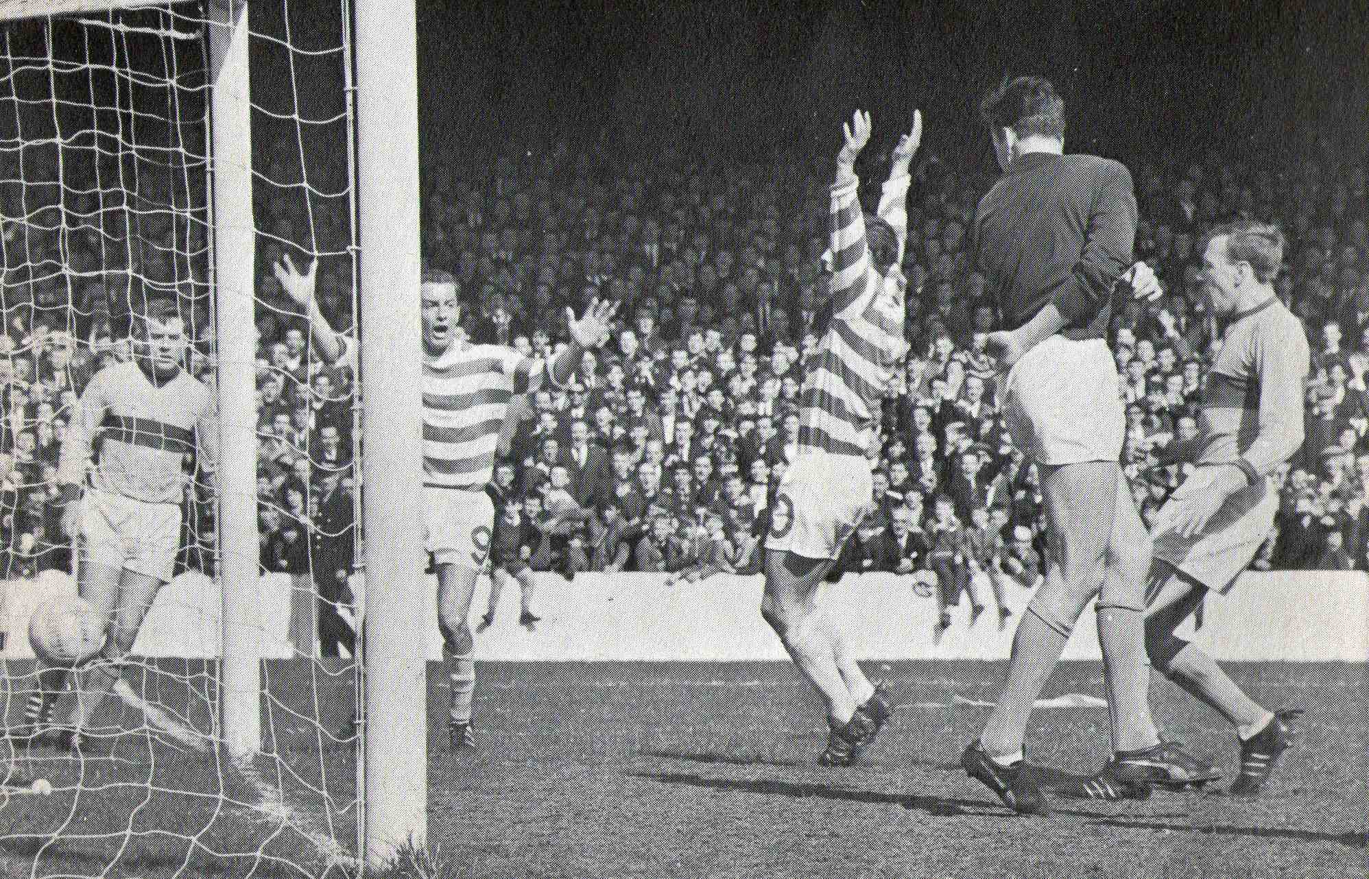 The game was even, and neither team was able to claim any decisive superiority, although there were a couple of occasions when Gallagher might, witha bit of luck, have won the game. One was late in the first half when he shot against the wind and the ball, having beaten Billy Ritchie, just rose over the bar at the last second, and the other was early in the second half when The Evening Times talks of Gallagher “shaking his fist in anger” at Steve Chalmers when Chalmers opted to slip the ball to Hughes rather than Gallagher who was in a far better position to score.