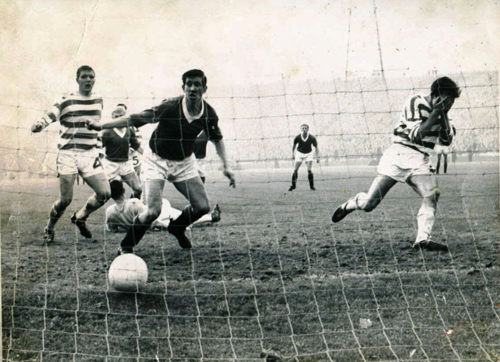 It was what was then called “kitchen sink” time as Rangers threw everything at that King’s Park goal with Gallagher now back as an out and out defender, occasionally dribbling the ball out of the penalty area but more often resorting to the tried and tested expedient of howfing the ball up the park or out of play. But Celtic were lucky in that they had all the experience in the world in goal in the shape of Ronnie Simpson, already the proud possessor of two English Cup medals. Ronnie took charge of the situation, giving instructions to everyone including captain McNeill, as 50,000 behind that goal died a thousand deaths every time a blue shirt got the ball.