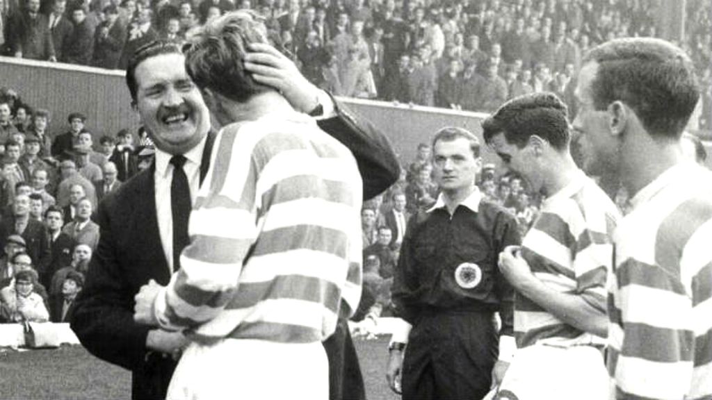 Tom Campbell and Pat Woods in The Glory And The Dream, still one of the best books ever written about our club, describe the winning goal and its aftermath thus “Another corner, this time on the left, to be taken by Gallagher, hurrying over to place the ball. Across it comes, a high, floating ball and too far out for the keeper, but he has left his goal…somebody is there – McNeill… and his header rages into the net. For two seconds, Hampden’s vast bowl was still, stunned by the sudden shock of decision, and then erupted into bedlam; the roar continued minute after minute and its prevailing note changed; it was not merely the burst of joy that a goal produces, rather it was a tumultuous welcome to the future and the instinctive realisation by all Celtic’s support that the young men had grown up and that nothing, now nor in the years to come, would withstand their collective spirit. McNeill, the young captain, had emerged from nowhere to score the goal that history demanded. As a member of the team in the past he had delighted in the joy of victory and been despondent in the misery of defeat, but now in full maturity he stood revelling in the moment of triumph”.
