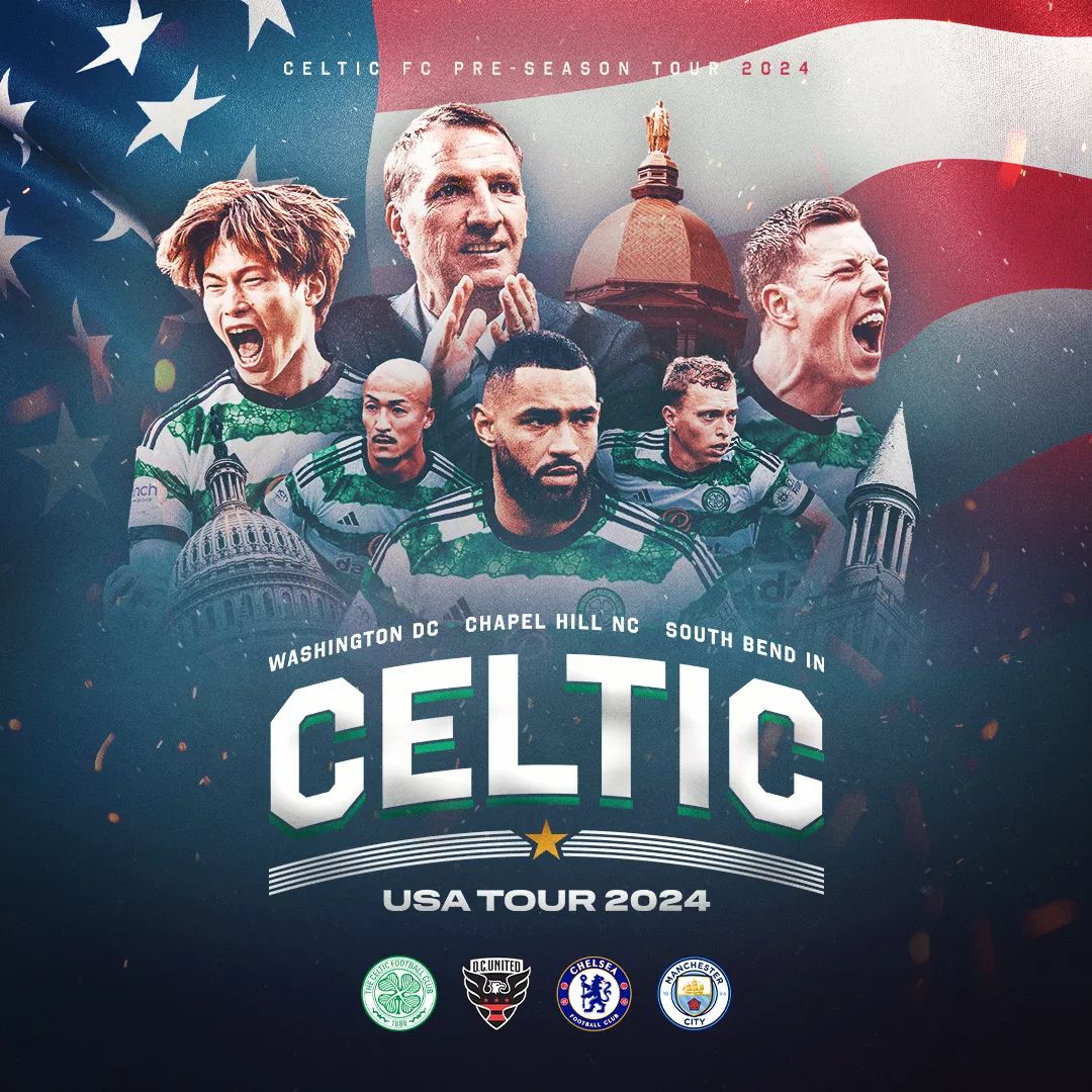 Celtic yesterday confirmed the final pair of the 2024 USA Tour opponents this summer. First, the Bhoys go head to head with Manchester City in Chapel Hill, North Carolina on Tuesday, 23 July.