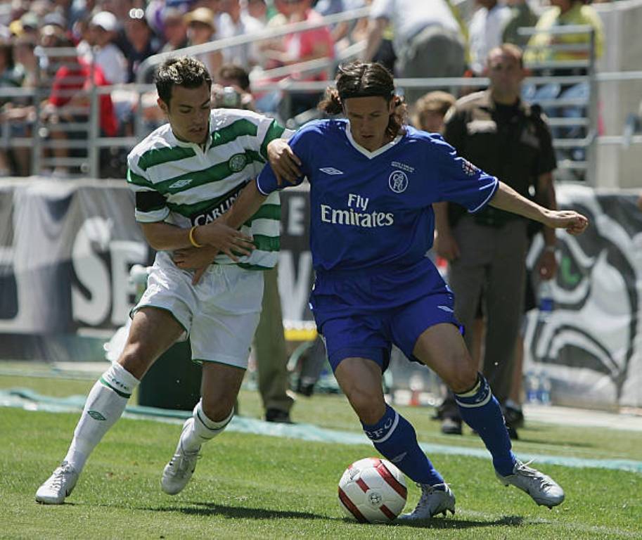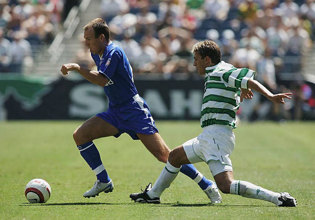 SEATTLE – 24 JULY 2004: Arjen Robben of Chelsea is pursued by Stilian Petrov of Celtic during the Champion’s World Series match between Celtic and Chelsea at Qwest Field on July 24, 2004 in Seattle. (Photo by Ben Radford/Getty Images)