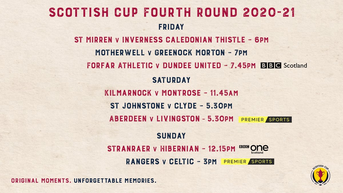 The 4th Round Scottish Cup tie at Ibrox between theRangers and Celtic has been confirmed for Sunday 18 April with a 3pm kick-off.