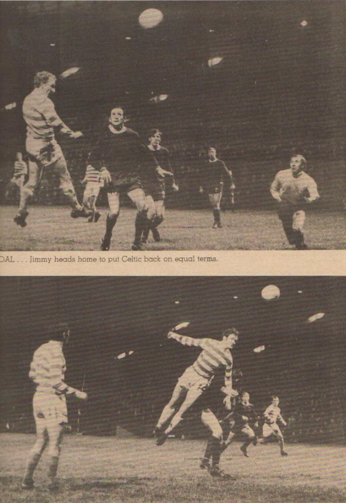 It seemed to work. Stein moved John Hughes to centre forward and brought on Harry Hood to replace Lisbon Lion Bobby Lennox and those changes paid off immediately with Big Yogi pulling one back for Celtic in the first minute of the second half after excellent work form Jimmy Johnstone. And it was Jinky who grabbed a double, scoring on 56 minutes to level the score before grabbing the Celtic winner with 13 minutes left to play to secure a win on what was an uncomfortable and almost embarrassing night for Jock Stein and his players.