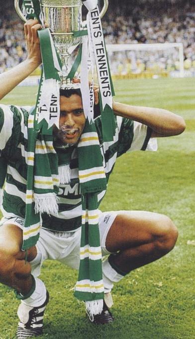 The Celtic team was: Bonner, Vata, Boyd, McNally, McKinlay, McLaughlin, Grant, McStay, Collins, Donnelly (O’Donnell), Van Hooijdonk.