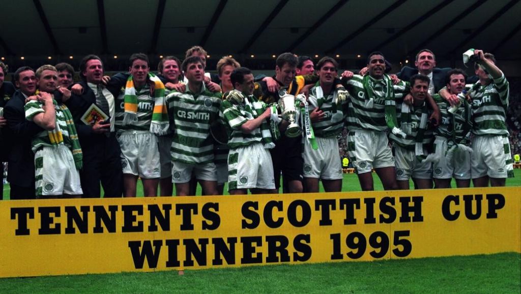 CELTIC’S SCOTTISH CUP FINALS – Number 30…CELTIC 1-0 AIRDRIE – HAMPDEN, 31 MAY 1995 – There are times like 1951, 1965 and 1995 when Celtic simply have to win a Scottish Cup final. This was one such day for six years of intense trophyless agony had passed since 1989.