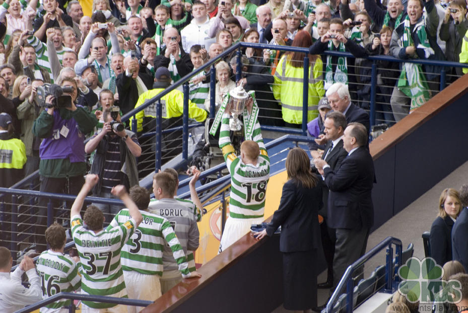 CELTIC’S SCOTTISH CUP FINAL VICTORIES – Number 34…CELTIC 1-0 DUNFERMLINE – HAMPDEN, 26 MAY 2007 – In what has to be described as a dreadfully poor game against already relegated Dunfermline Athletic, Celtic eventually crept over the line with a scrappy late goal from Cameroon International Jean Joel Perrier-Doumbe. It was Gordon Strachan’s first (and only) Scottish Cup as Manager, and it did complete a League and Cup double, and Celtic had now won the Scottish Cup for the 34th time.