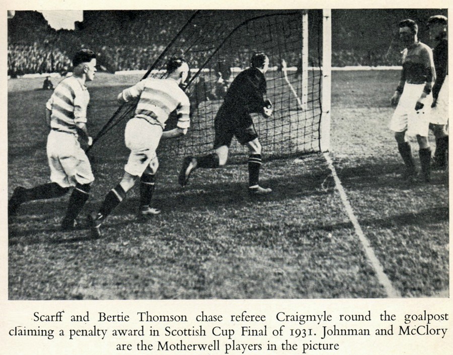 CELTIC’S SCOTTISH CUP FINALS – Number 13…CELTIC 4-2 MOTHERWELL – HAMPDEN, 15 APRIL 1931 – Celtic’s 13th Scottish Cup, and in some ways, the first drawn game with its two late goals is more famous than the replay which was played on a Wednesday evening before a crowd which was only just shy of 100,000. (And 1931 was the worst year of the depression!). It was a tight game with Celtic only really feeling secure when McGrory scored his second goal late in the game. Bertie Thomson scored the other two goals, but Motherwell fought all the way.