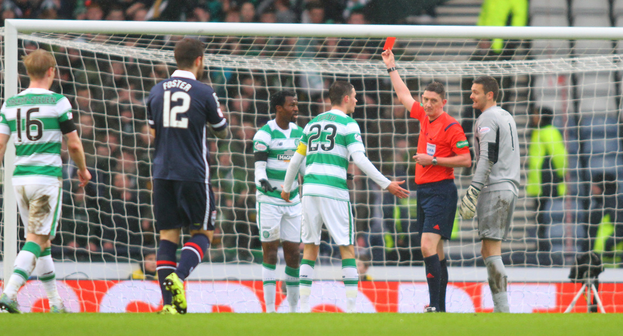 The game turned on a harsh draconian decision by Craig Thomson when Efe Ambrose was adjudged to have fouled Alex Schalk in the penalty box. A penalty kick and a red card was the outcome and Celtic never recovered. The penalty was converted and Ross County scored twice in the second half. Then, as often happens in life, a chance was given to the drowning man to save himself – but he could not or would not take it.