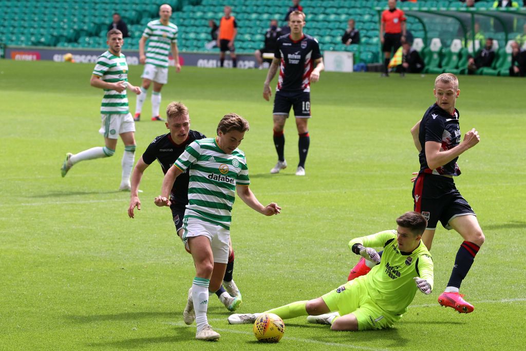Ross Doohan and James Forrest in action. Photo: Jeff Holmes