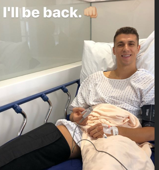 Full of smiles, the 25 year old Croatian took to Instagram to show a photograph from his hospital bed with the defiant message ‘I’ll be back’ after he came out of surgery.