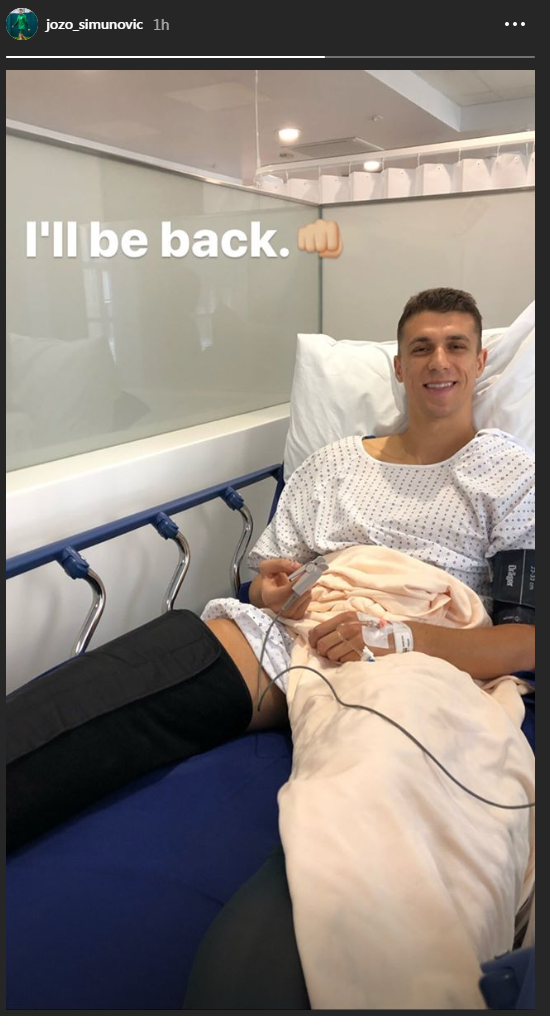 JOZO SIMUNOVIC posted a defiant message from his hospital bed promising that he’ll be back in action for Celtic as soon as possible. The Croatian defender went under the knife to sort a minor issue with his troublesome knee and is likely to be out of action for around 6 weeks.