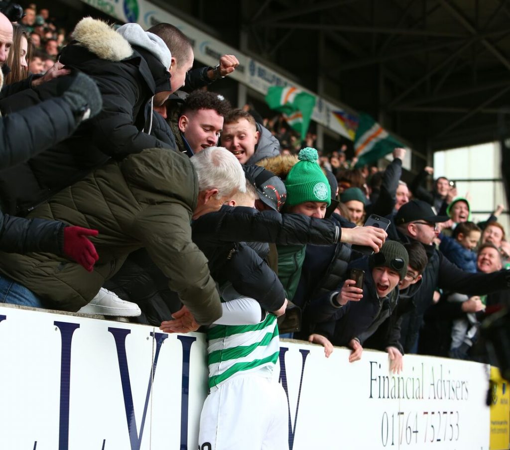 Collum used the SFA’s Celtic Rule by issuing a yellow card to Celtic’s number 49 for scoring then celebrating with the supporters and it all appeared to be too much for Jamesy as he limped off shortly after this holding his hamstring.