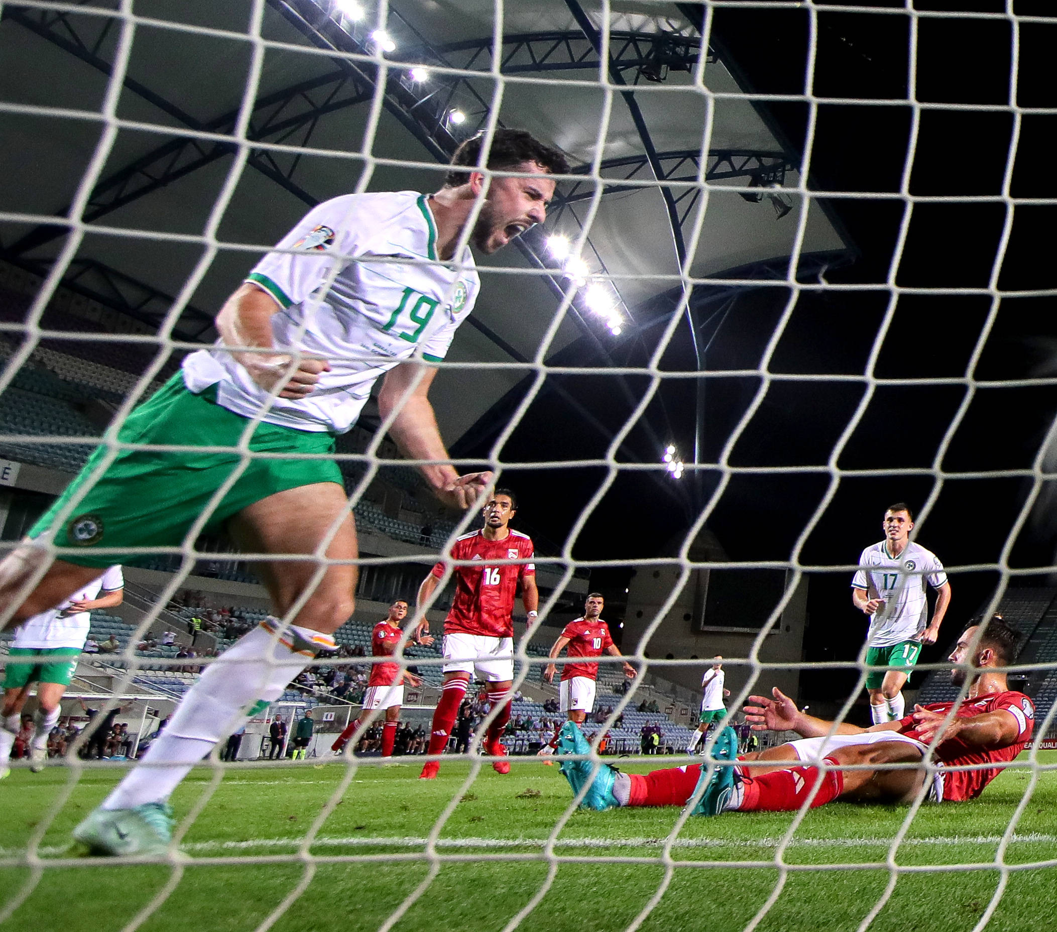 2024 Qualifying Round Group B, Estadio Algarve, Faro, Portugal 16/10/2023 Gibraltar vs Republic of Ireland Ireland  Mikey Johnston celebrates scoring. Photo  INPHO/Ryan Byrne