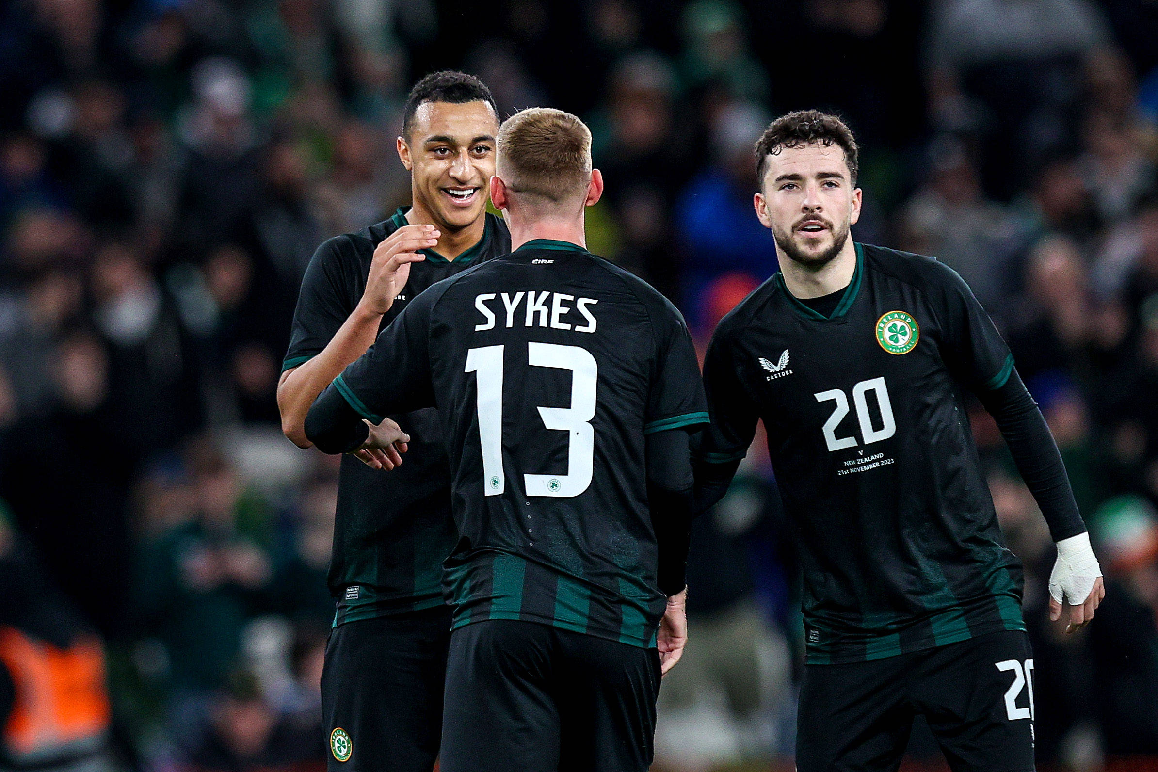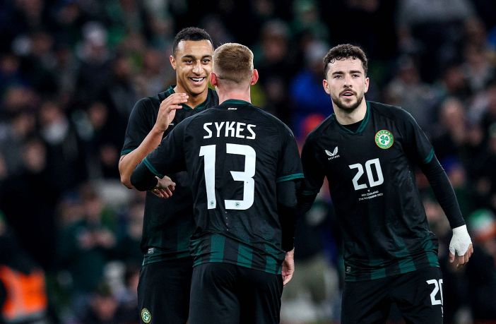 Republic Of Ireland Squad Training, FAI National Training Centre, Blanchardstown, Dublin 25/3/2024 Adam Idah, Mikey Johnston and Jake O Brien. Photo  INPHO/Ryan Byrnex RB1