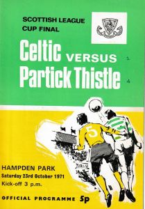 As a wide-eyed 12 year-old kid, I stood with my dad in the middle of the ‘Celtic End’ way back on Saturday 23 October 1971. My eyes widened with increasing regularity as first, Alex Rae, then Bobby Lawrie swiftly followed by Denis McQuade and Jimmy Bone stuck four daggers into the hearts of our support in the first 37 minutes of the Scottish League Cup Final.
