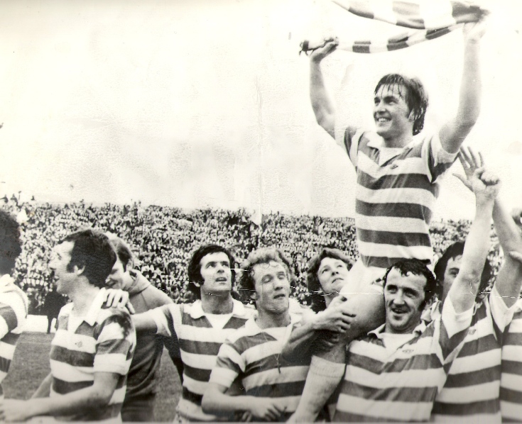 The team was captained by Kenny Dalglish, in his final season at Celtic, and he savoured the moment as he was carried shoulder-high around the Easter Road pitch at full-time to a sea of green, white and noise from the large travelling support.