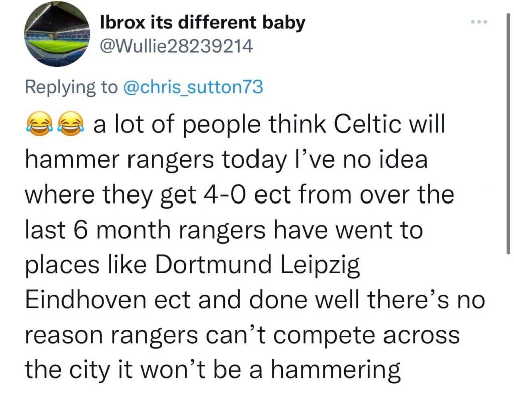 💬 “It’s a great day when we win away from home & @CelticFC beat Rangers!” 😂
