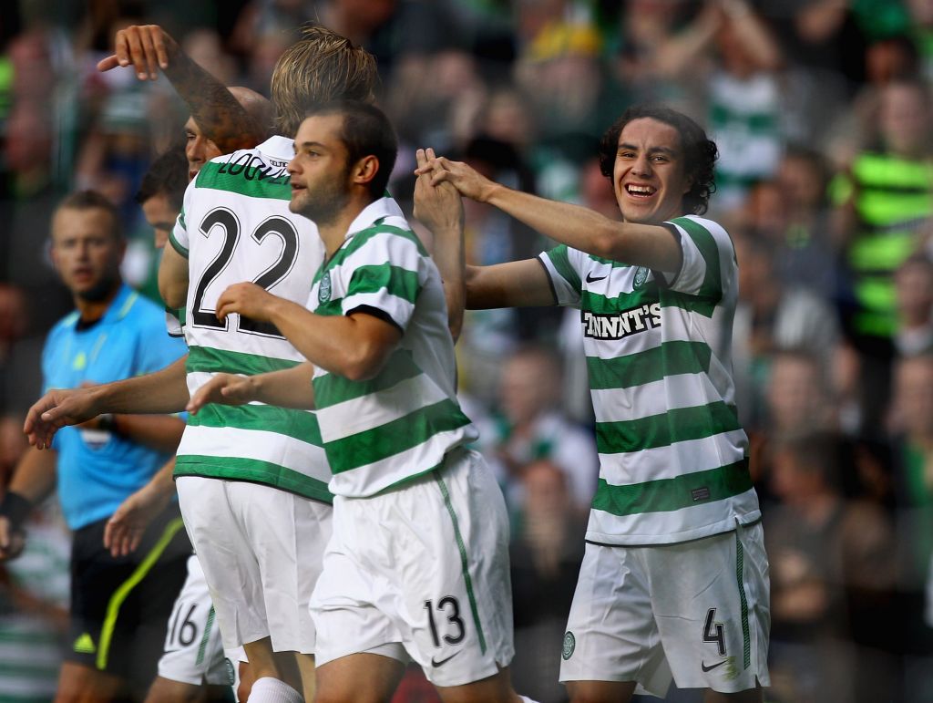 Efrain Juarez of Celtic celebrates after scoring during the UEFA Europa League Play Off match between Celtic and FC Utrecht at Celtic Park on August 19, 2010. (Photo by Jeff J Mitchell/Getty Images)