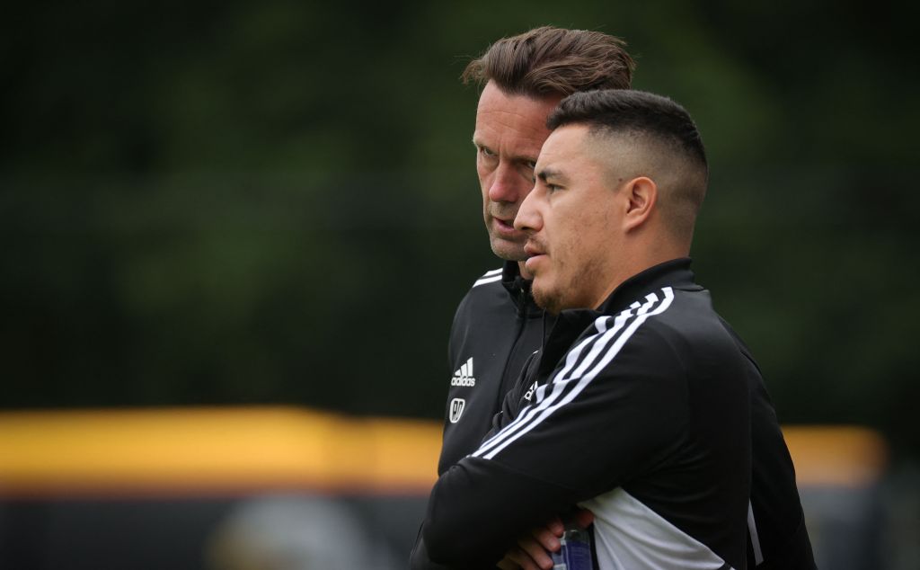 Standard’s head coach Ronny Deila and Standard’s assistant coach Efrain Juarez pictured during a friendly game bewteen Standard Liege and Dutch Go Ahead Eagles during a training camp of Belgian first league team Standard Liege, in Wageningen, The Netherlands, ahead of the 2022-2023 season, Wednesday 06 July 2022.  (Photo by VIRGINIE LEFOUR/BELGA MAG/AFP via Getty Images)