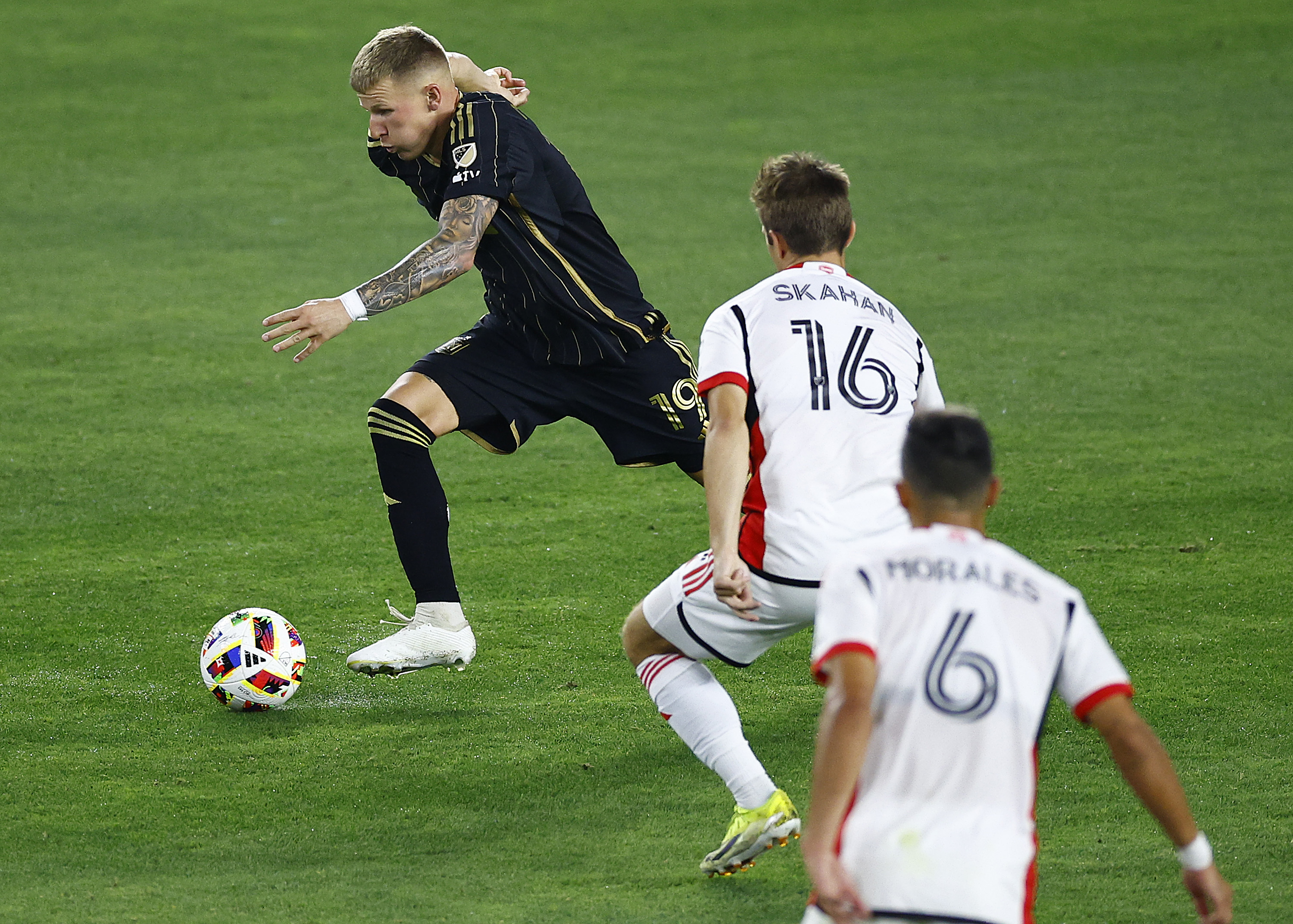 Mateusz Bogusz of Los Angeles FC controls the ball against the San Jose Earthquakes at BMO Stadium on June 22, 2024 in Los Angeles, California. (Photo by Ronald Martinez/Getty Images)