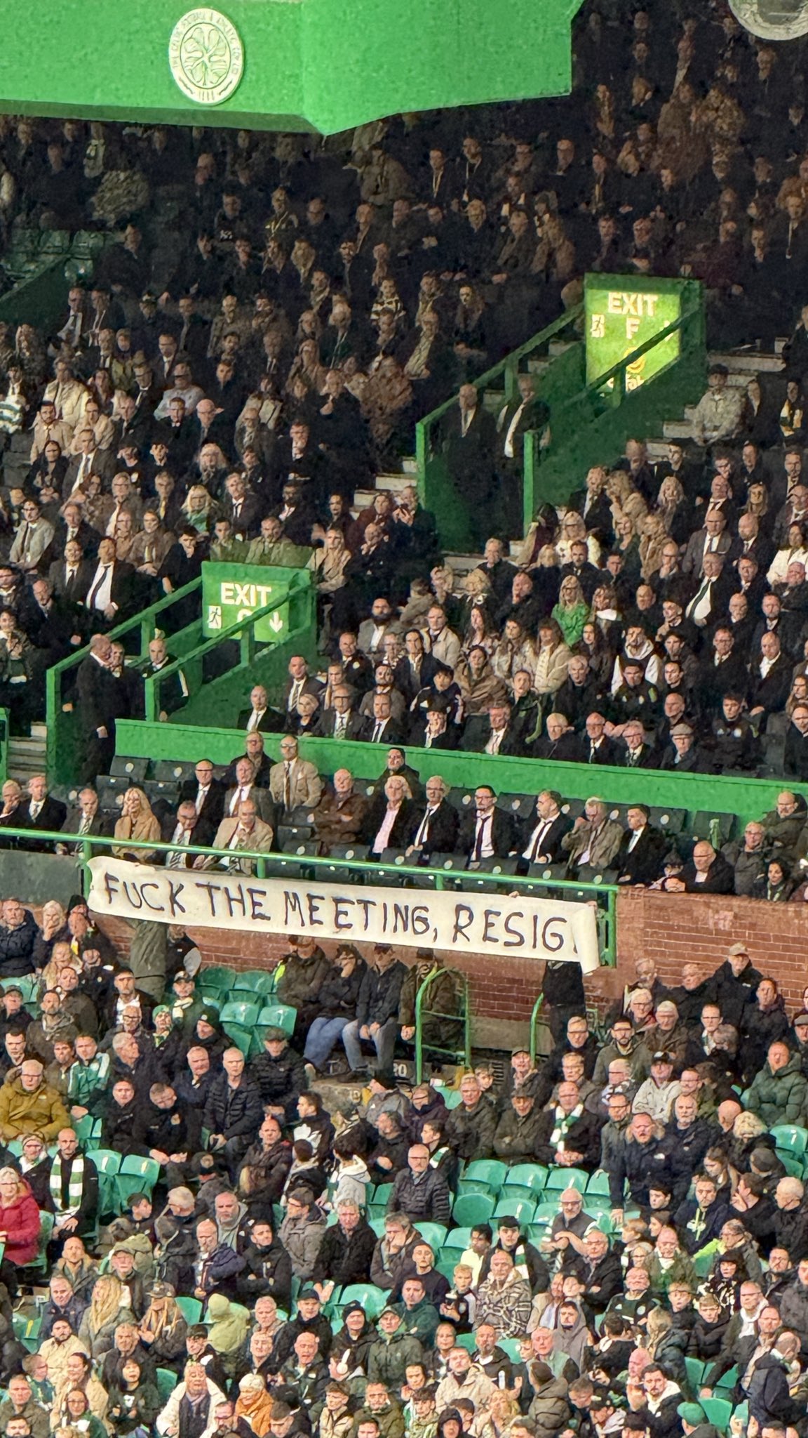 During the game, an explicit banner that was first displayed in the North Curve made its way round to the Main Stand, in front of the Celtic Board.