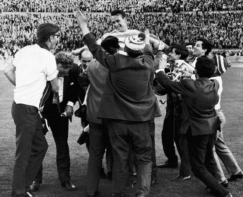 Celtic’s fast-paced attacking style eventually proved too much for the more cynical, defensive approach of the Italian champions. Inter took an early lead through Alessandro Mazzola’s penalty before Celtic twice hit the crossbar among their 39 other attempts on goal, eventually wearing the 11-man defence down with goals from Tommy Gemmell and Steve Chalmers.