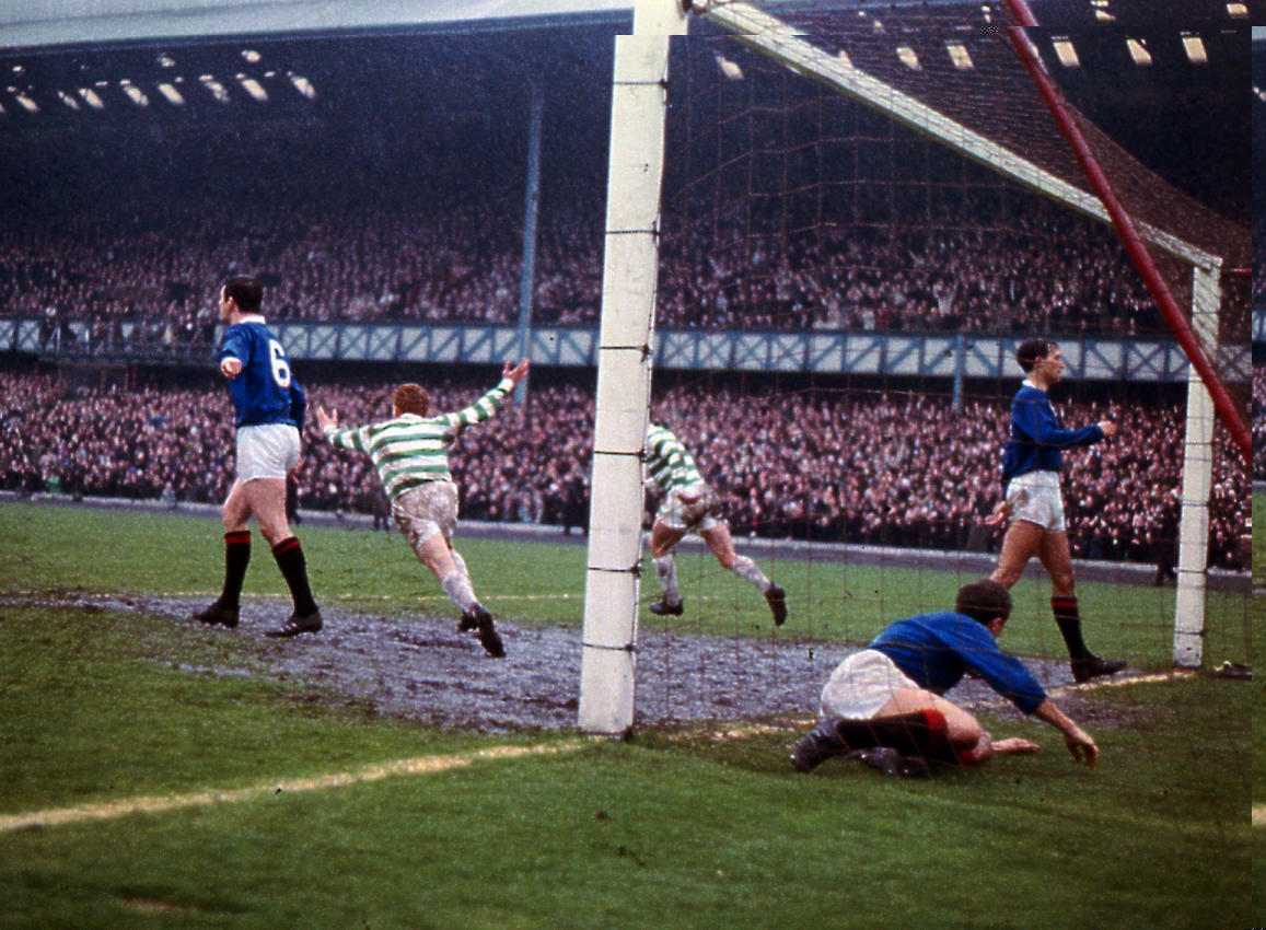 1967 Ibrox, 6 May. Rangers 2 Celtic 2. A game played in teeming rain, and a curious one with both teams scoring a good goal and a scrappy one each. Celtic’s two were scored by Jimmy Johnstone. It was Celtic’s first ever domestic treble.