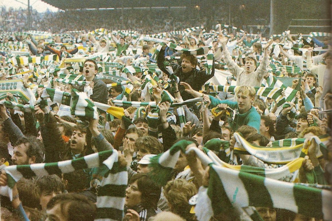 1988 Celtic Park, 23 April. Celtic 3 Dundee 0. A dangerously over-crowded Celtic Park (the biggest crowd in recent history and certainly well over 70,000) saw Celtic win the League in their Centenary season with goals from Chris Morris and two from Andy Walker.
