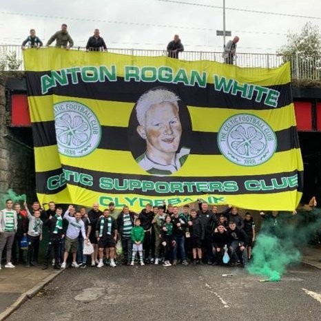 The banner was then taken to all grounds in Scotland and travelled all over Europe. They have recently added another banner with Anton’s picture in front of the black and yellow design of Celtic’s bumblebee away strip. It was on one of those Euro trips to play Benfica in Lisbon that Bartley McGlynn and Tommy McMenamin from the Twin Towns CSC in Balleybofey, Donegal, saw the banner and got in touch to ask about their CSC and specifically Anton’s story.