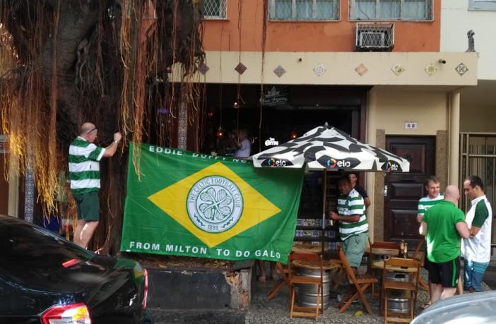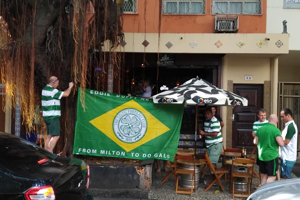 In March 2018, several members of the club went to Rio de Janeiro for St Patrick’s Day. Before going, they hooked up with the Rio Fergus McCann CSC to arrange to watch the games while they were over. On their second night over there and before meeting the Rio CSC, the guys were approached outside a bar by Humberto Souza, who recognised the Celtic badge on the top that one of the guys was wearing.