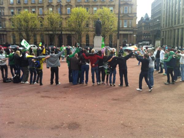 The bus was leaving from George Square on the Thursday morning and a certain ex-director and Lord Provost of Glasgow actually waved us away. The supporters on the bus were a mixture of bhoys and ghirls of all walks of life but as I was on my own I soon made some new friends.