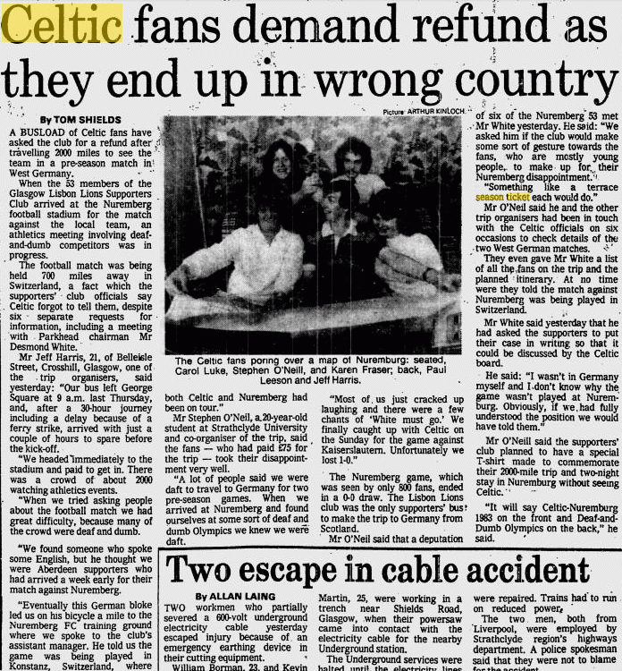 More on the ill-fated trip to watch Celtic in Nuremberg in 1983…