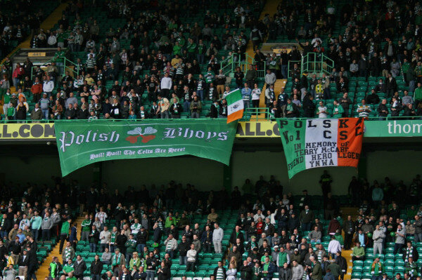 In 2004, when Poland became part of the EU and their citizens did not require a visa to live and work in the UK, a few of them moved to Scotland and it was then easy for them to attend Celtic games every week. They have a few season tickets in the 442 area, where they also put their banners.