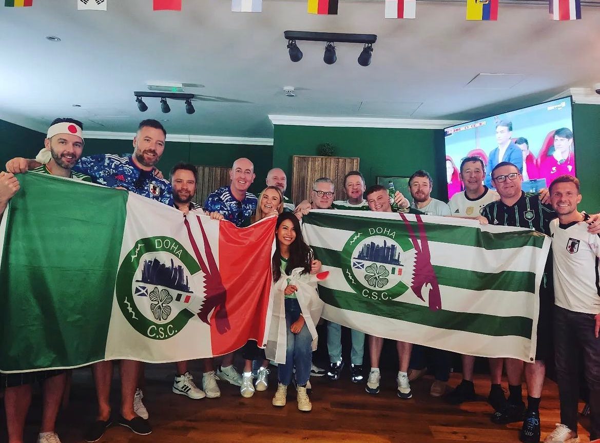 At that game, they joined up with another group that a well-known local Celtic fan, Brian Ferguson, had been gathering at the same time. They had at least 40 at that game, which was their biggest turnout at the time. Sadly, Brian passed away in 2022 and is missed by all at the CSC. They floated abound a few venues before settling on The Shamrock in the Magnum Hotel, West Bay, Doha, around 2019.