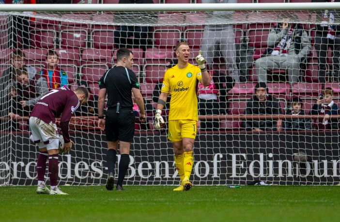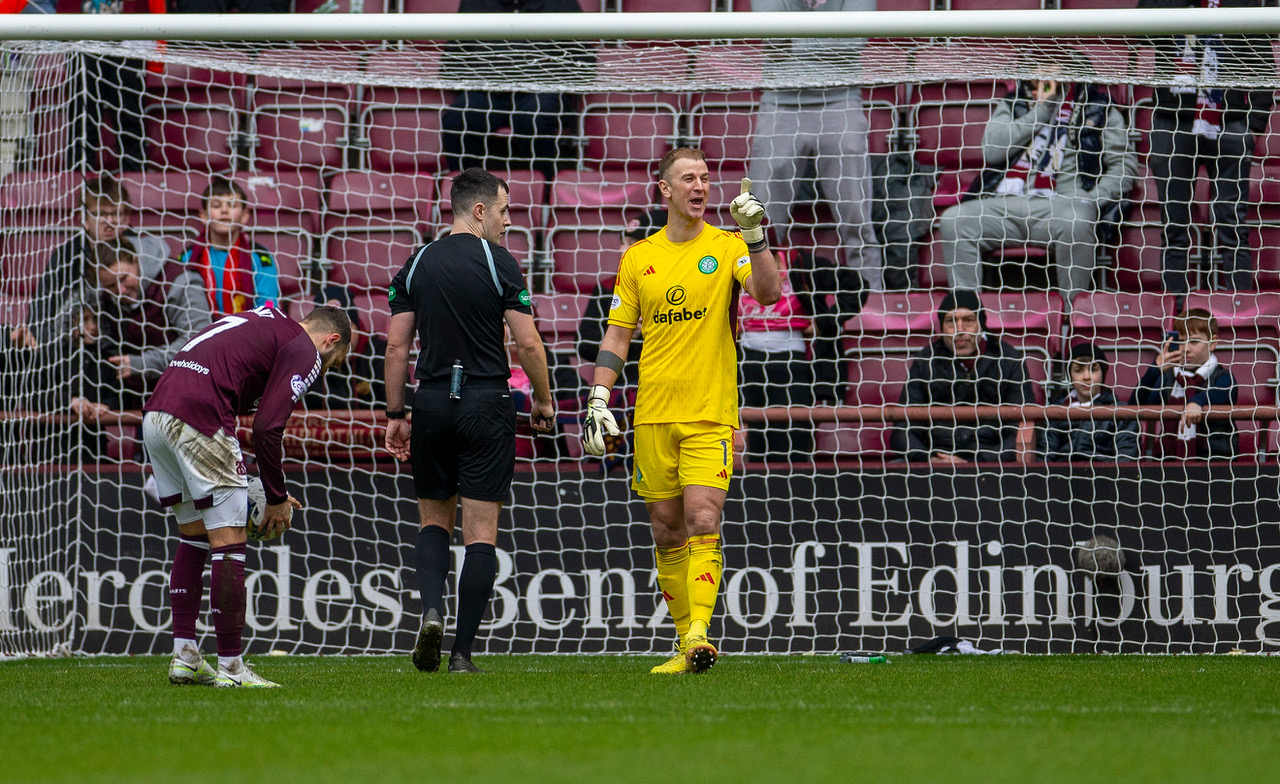 On two occasions, John Beaton on VAR interjected and ordered Don Robertson to conduct an on-field review, which reduced Celtic to ten men and then handed Hearts the chance to take the lead from the spot.