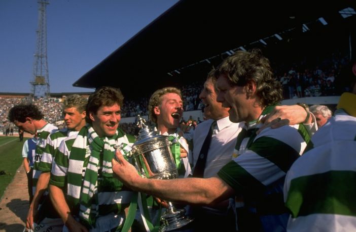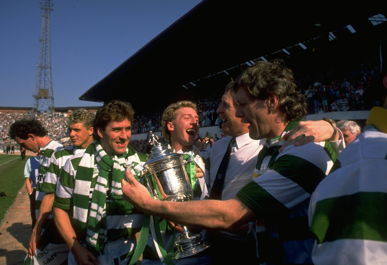 1988: Frank McAvennie of Celtic celebrates after the Scottish Cup Final match against Dundee United at Hampden Park in Glasgow, Scotland. Celtic won the match 2-1. Photo; Allsport UK /Allsport
