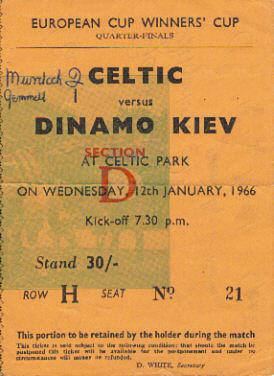 Charlie Gallagher would make it two goals in two games with the only score in the home game with Dundee United five days later, and he would remain in the team in midweek as Dinamo Kiev became the first Russian side to play Celtic, the Cup Winners’ Cup quarter-final first leg tie drawing over 64,000 to Glasgow’s east end.