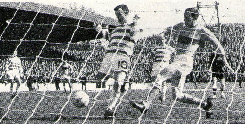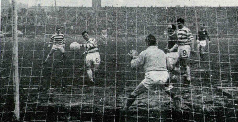 The second half would be a different story entirely, Stevie Chalmers equalising within five minutes then putting Celts ahead on the hour, heading home from Charlie Gallagher’s corner kick. Charlie’s own moment of glory would quickly follow, a fabulous shot crashing home off the underside of the bar to leave Billy Ritchie helpless and give Celts a 3-1 lead. With 10 minutes remaining, the Bhoys scored a fourth, courtesy of a rare Tiny Wharton assist, the portly referee smartly dummying a short free-kick from Gallagher, allowing Bobby Murdoch to score with another superb long-range shot. And the icing on the cake was served in the dying seconds as Chalmers forced the ball home for his hat-trick.