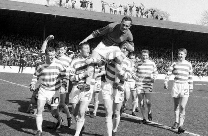 There are emotional scenes on and off the pitch, the veteran goalkeeper Ronnie Simpson held aloft on the shoulders on his younger teammates, as he wins the first Championship of a 20-year playing career. There will be many more, Faither, together with greater glories. For Charlie Gallagher and most of the Bhoys, the domestic set of major medals has been clinched within the past 12 months, after years of ‘might have beens’ and ‘also rans’. They will now take their place in the European Cup – the European Champions Cup – for the first time ever.