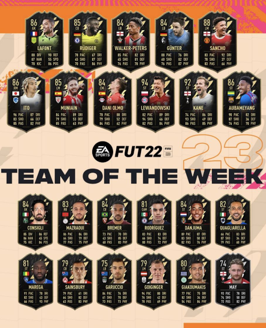 The player has been recognised alongside Harry Kane and Robert Lewandowski in the Team of the Week, while being given a rating of 80 following his performance.