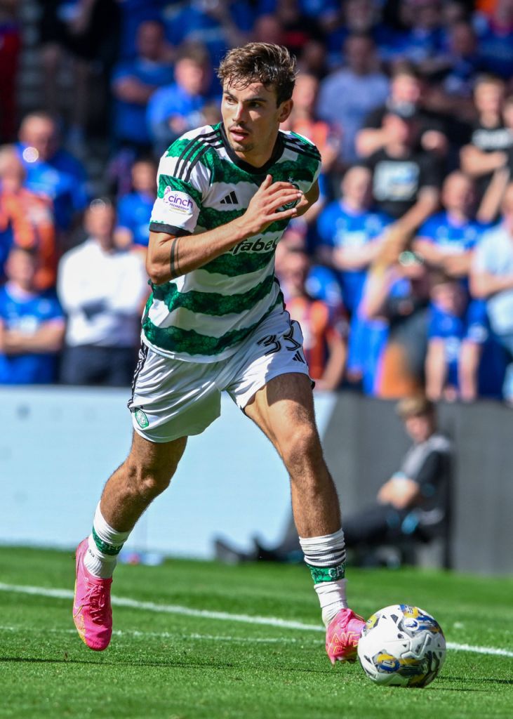 IMAGO / Shutterstock Photo by Kirk O Rourke/Shutterstock Liam Scales of Celtic clears during the Scottish Premiership match at Ibrox on 03 September 2023