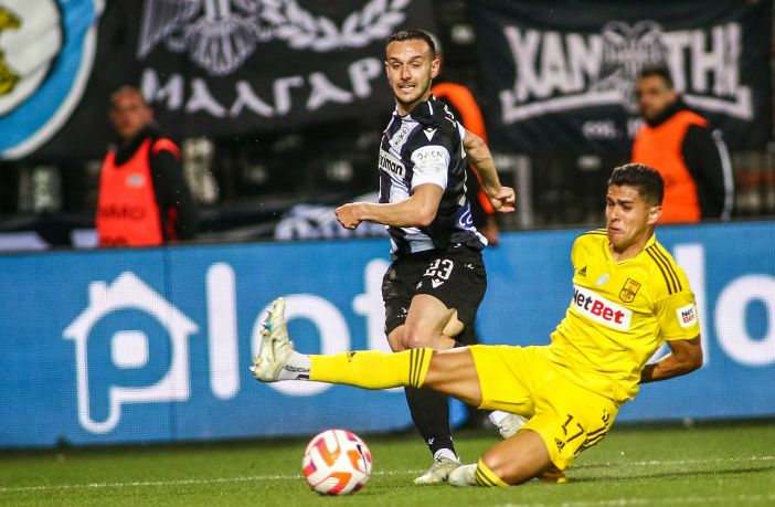 April 30, 2023, Thessaloniki, Greece: Aris player Luis Palma in action during a Greek Superleague Playoffs soccer game between PAOK FC and Aris FC. Thessaloniki Greece – Photo Giannis Papanikos